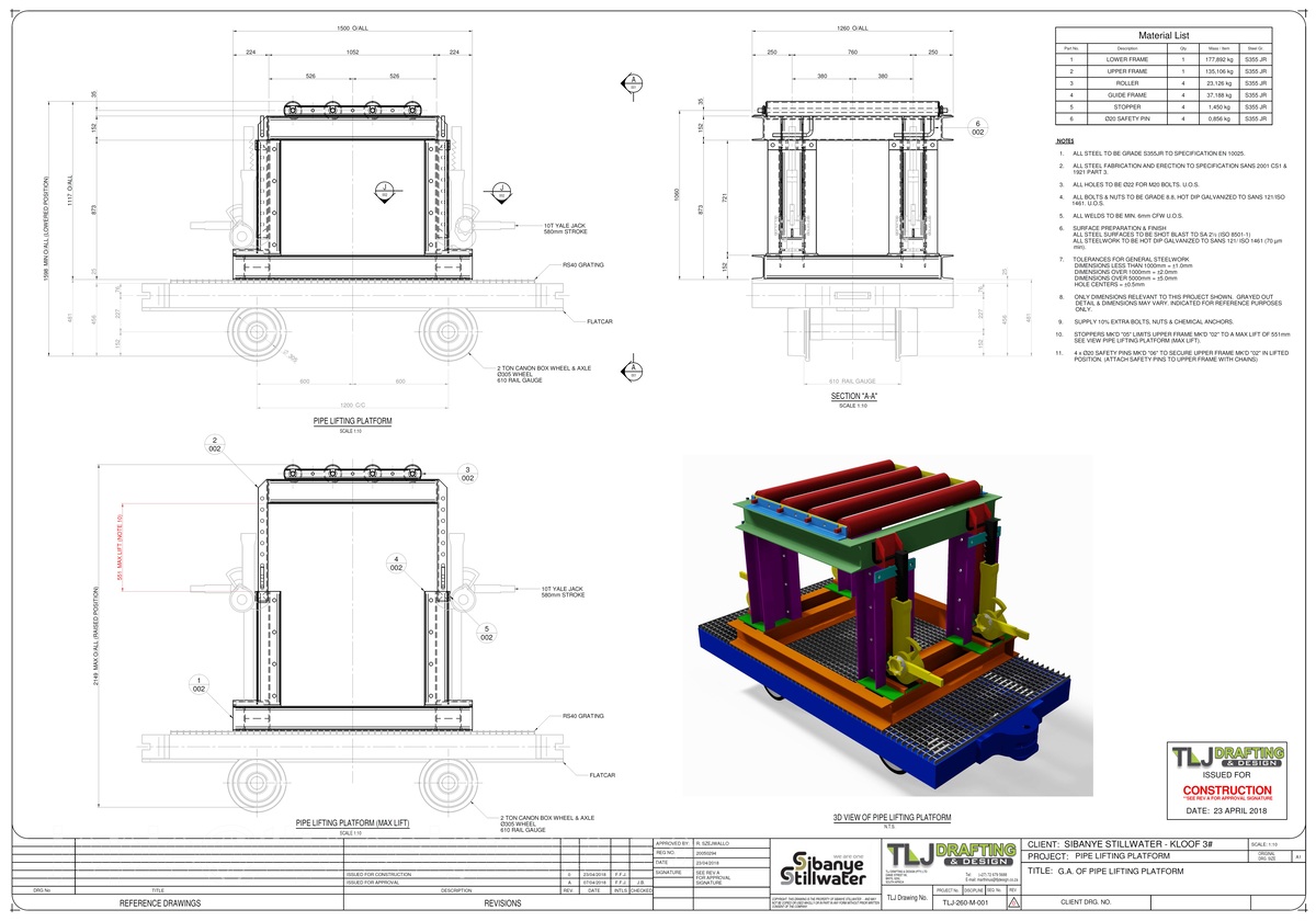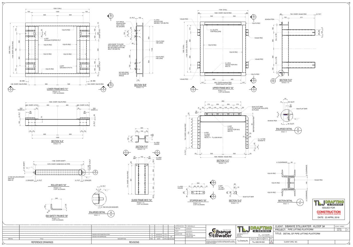 Project deliverables: Shop detail drawings for a pipe lifting equipment. These drawings were delivered within 27 hours from being contacted.